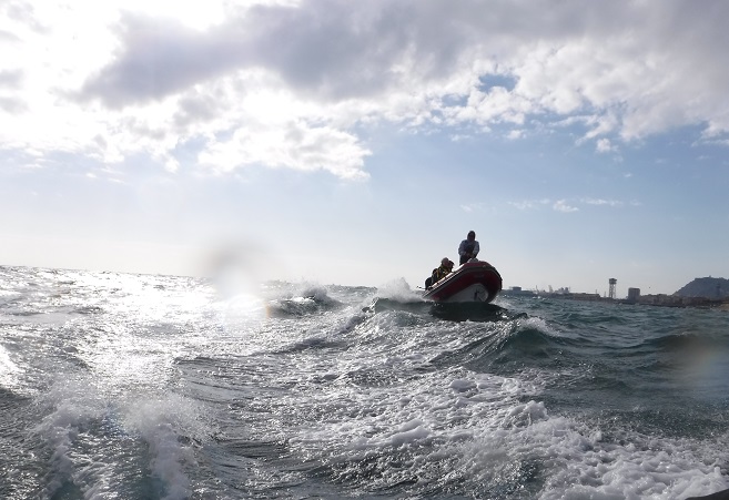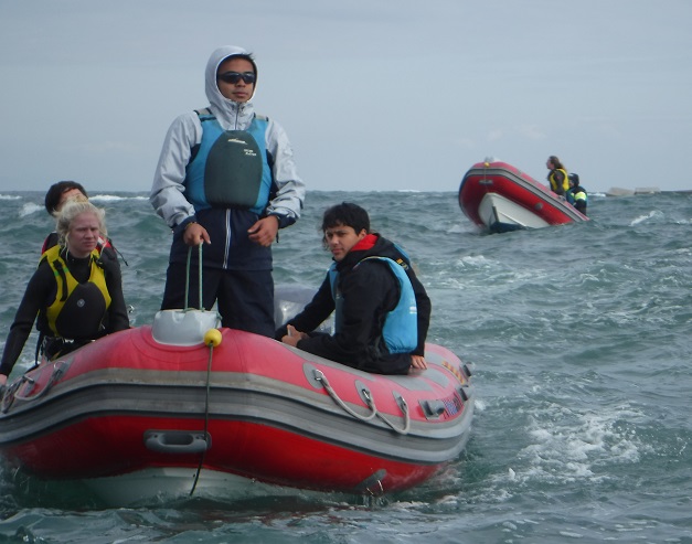 La meteorologia no ens va acompanyar, però varem donar la sortida en dos grups. Vent i onades varen complicar bastant la navegació, però tot serveix per apendre !